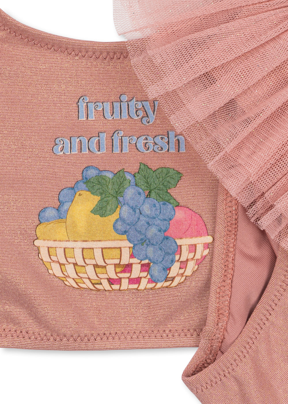 Soft 2 piece swimsuit in a shimmery finish with tulle detailing. The bottoms are designed with a voluminous tulle detail. Made for fun days at the beach or pool, the Amandine swimsuit is made from a quick-drying material that feels light and comfy to wear.