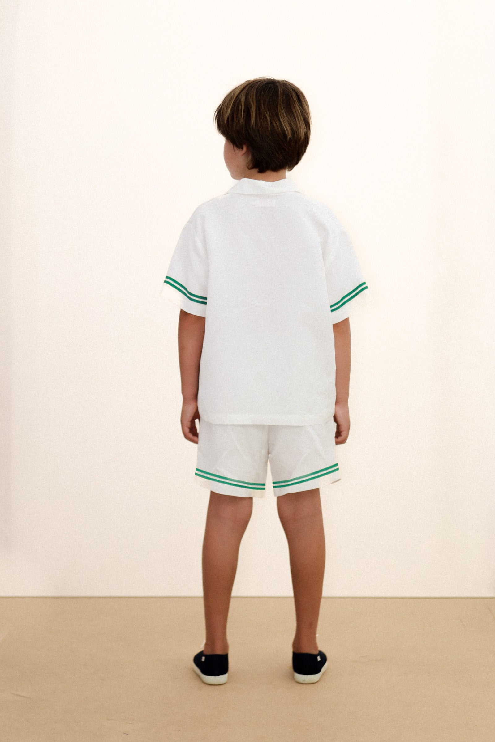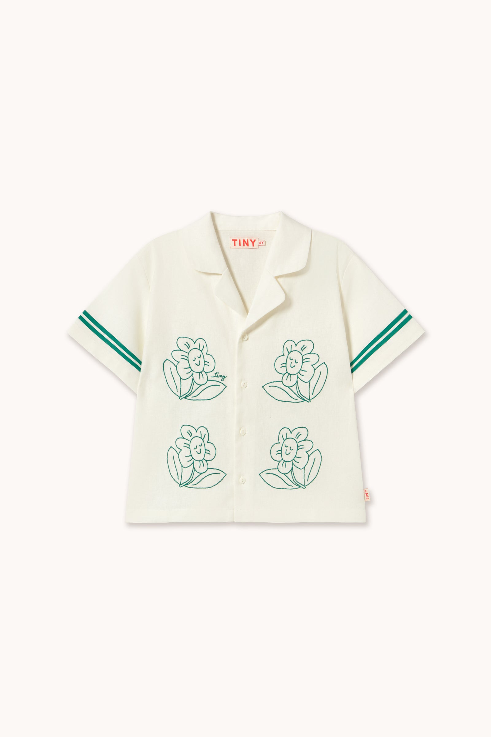 Tinycottons embodies the bold, colorful spirit of its Barcelona base through playful, high-quality kidswear. Crafted from linen and cotton, this shirt is detailed with embroidered Daisies at the front and delicate stripes at the sleeves.