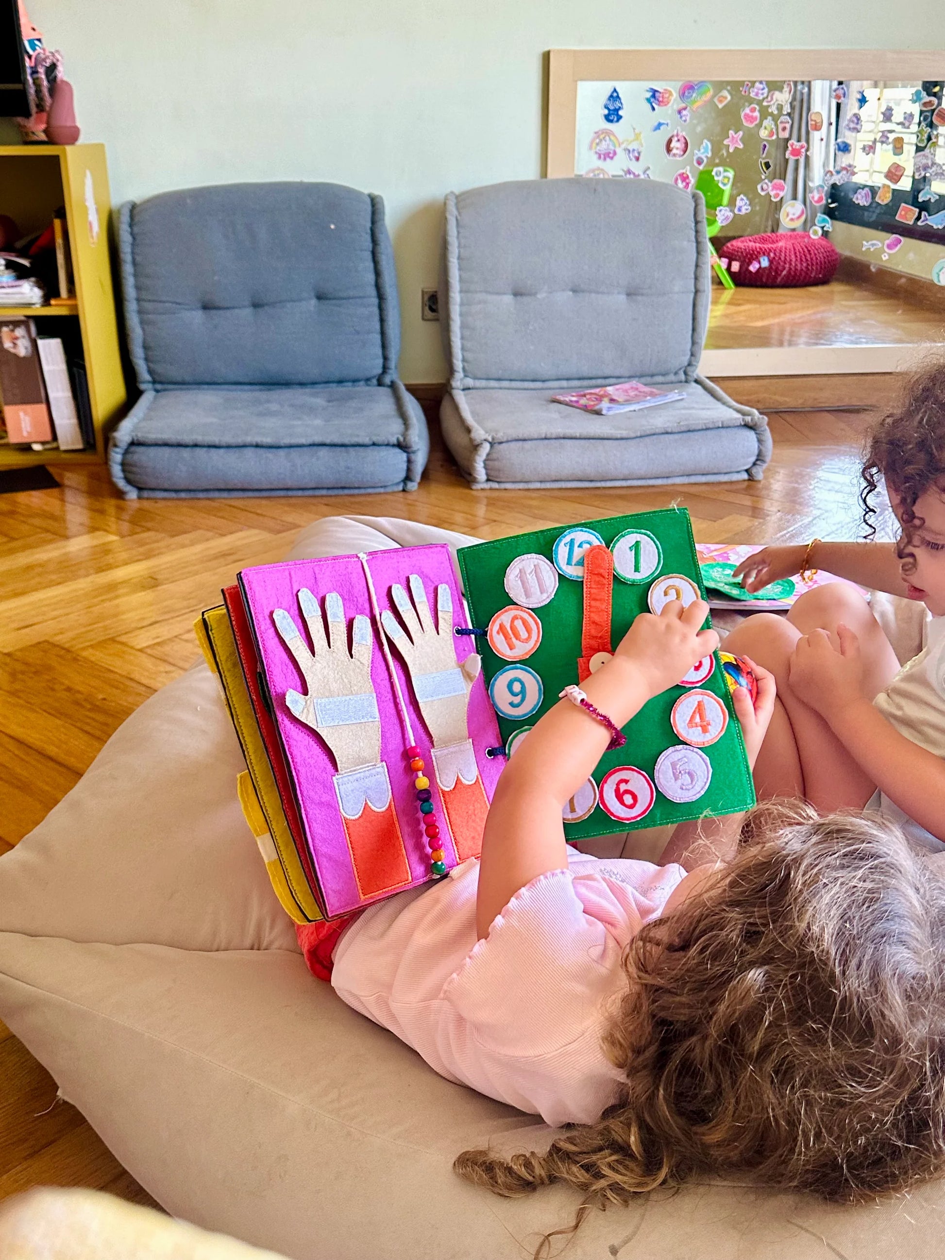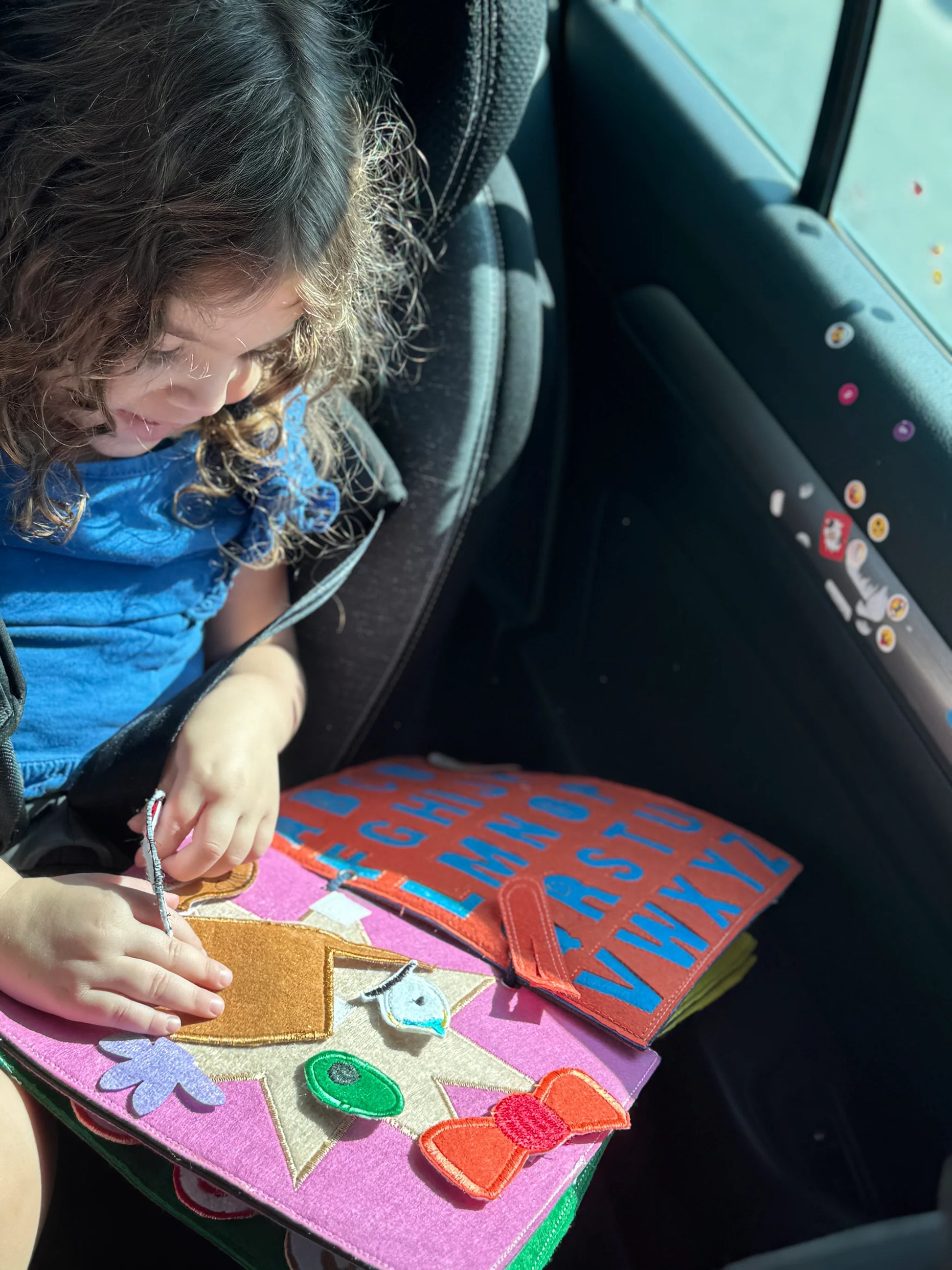 Discover the Elephant Busy Book, Portable and lightweight, it's the perfect travel companion that allows for hours of fun! It has 8 activity pages: Big elephant puzzle | Make your own burger | Letters | Felling | Shoe Tie| Counting| Clock| Zipper Storage