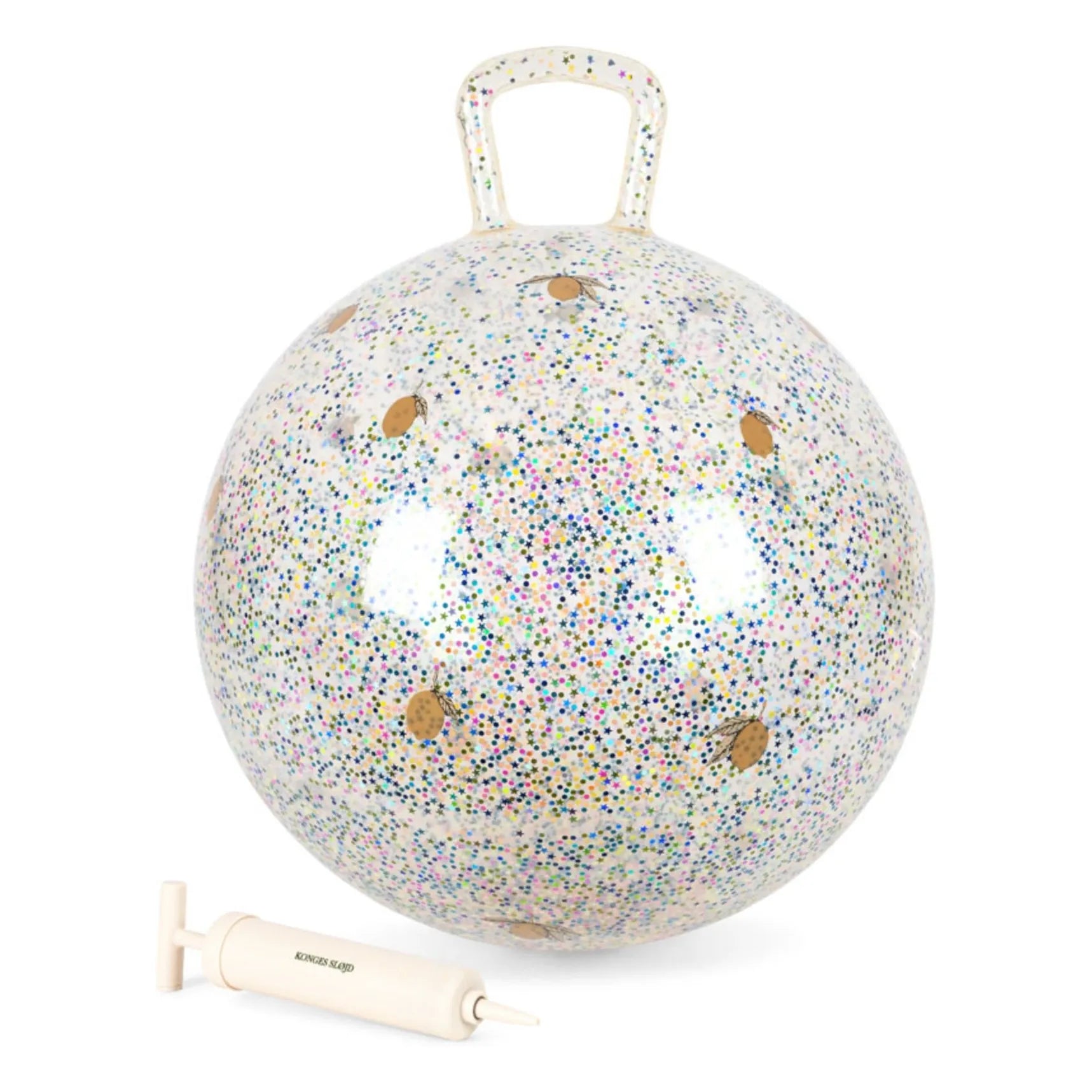 Giant bouncy ball with a handle for a secure grip. Hold on tight and off you go!