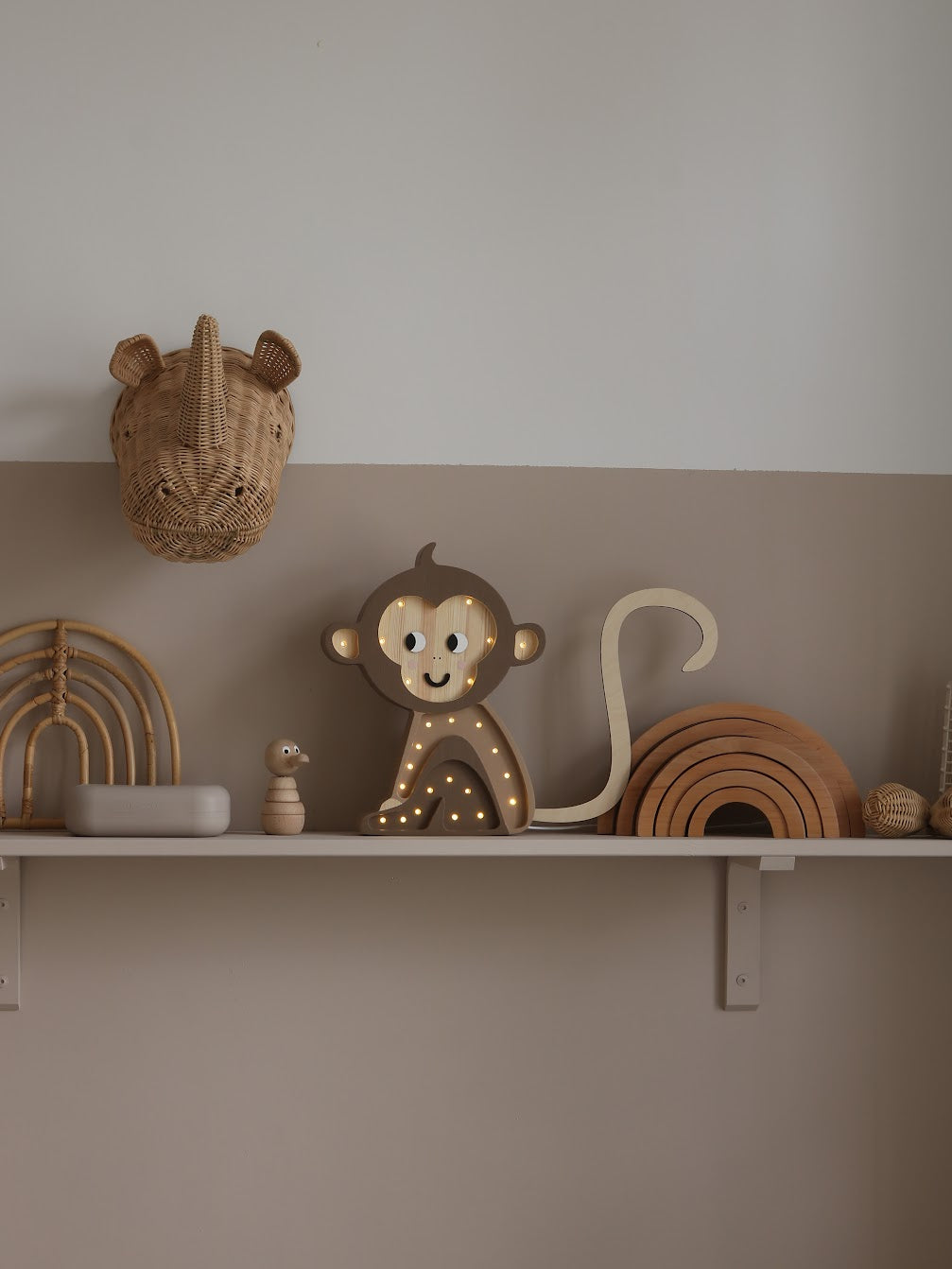 This cheeky monkey is guaranteed to giggle its way into your little one's heart and help them sleep safely. Can be hung on the wall or set on their nightstand!
