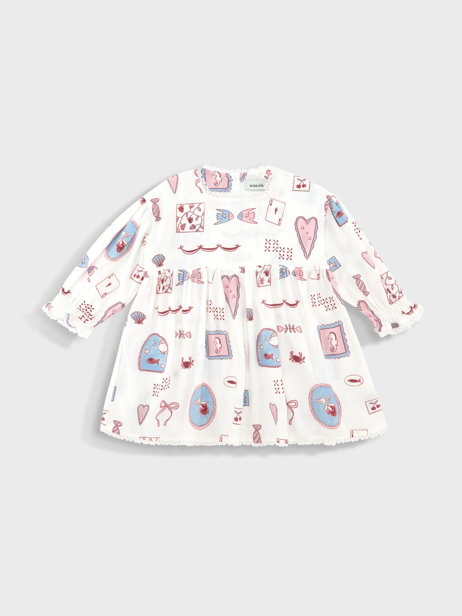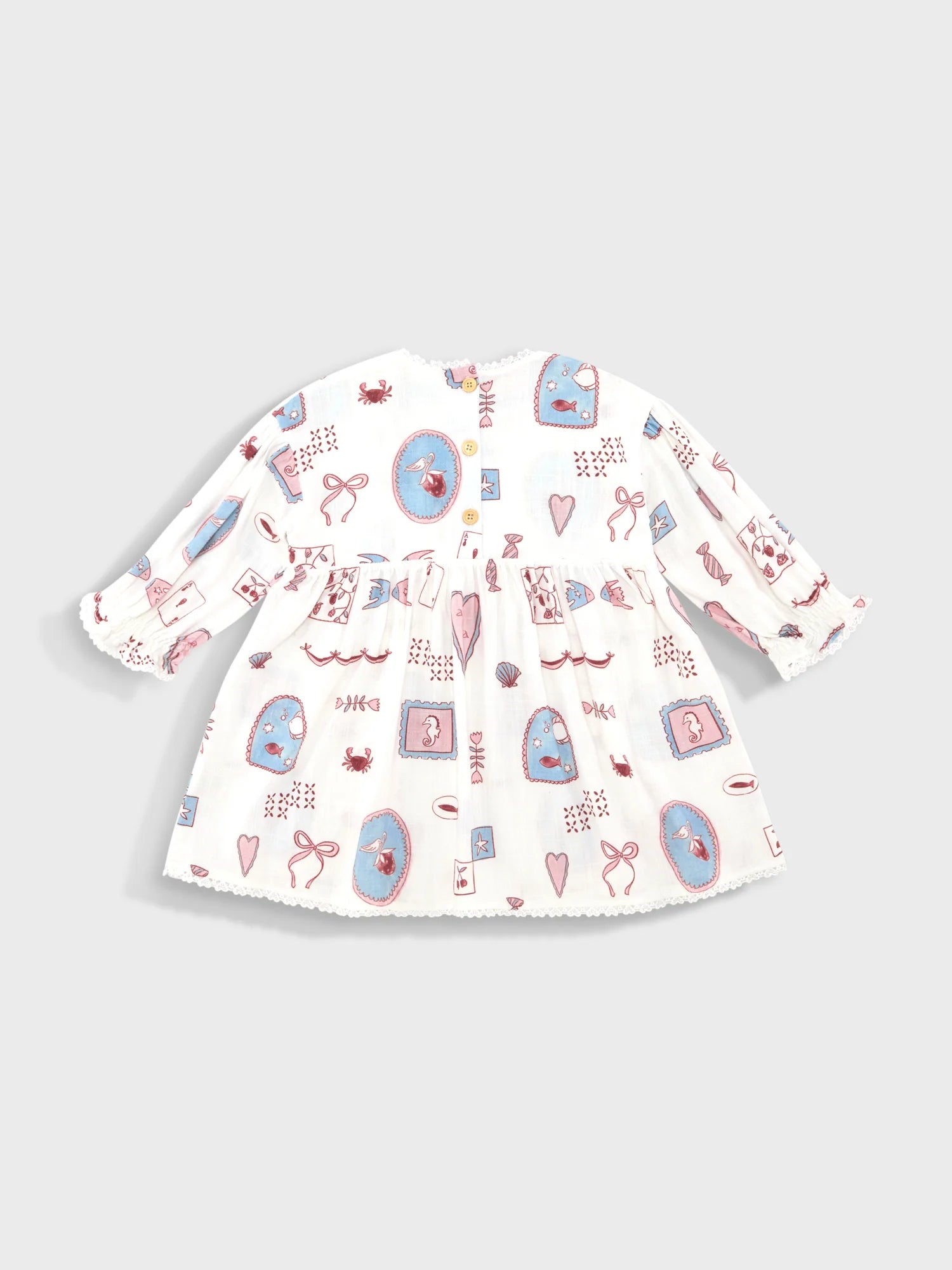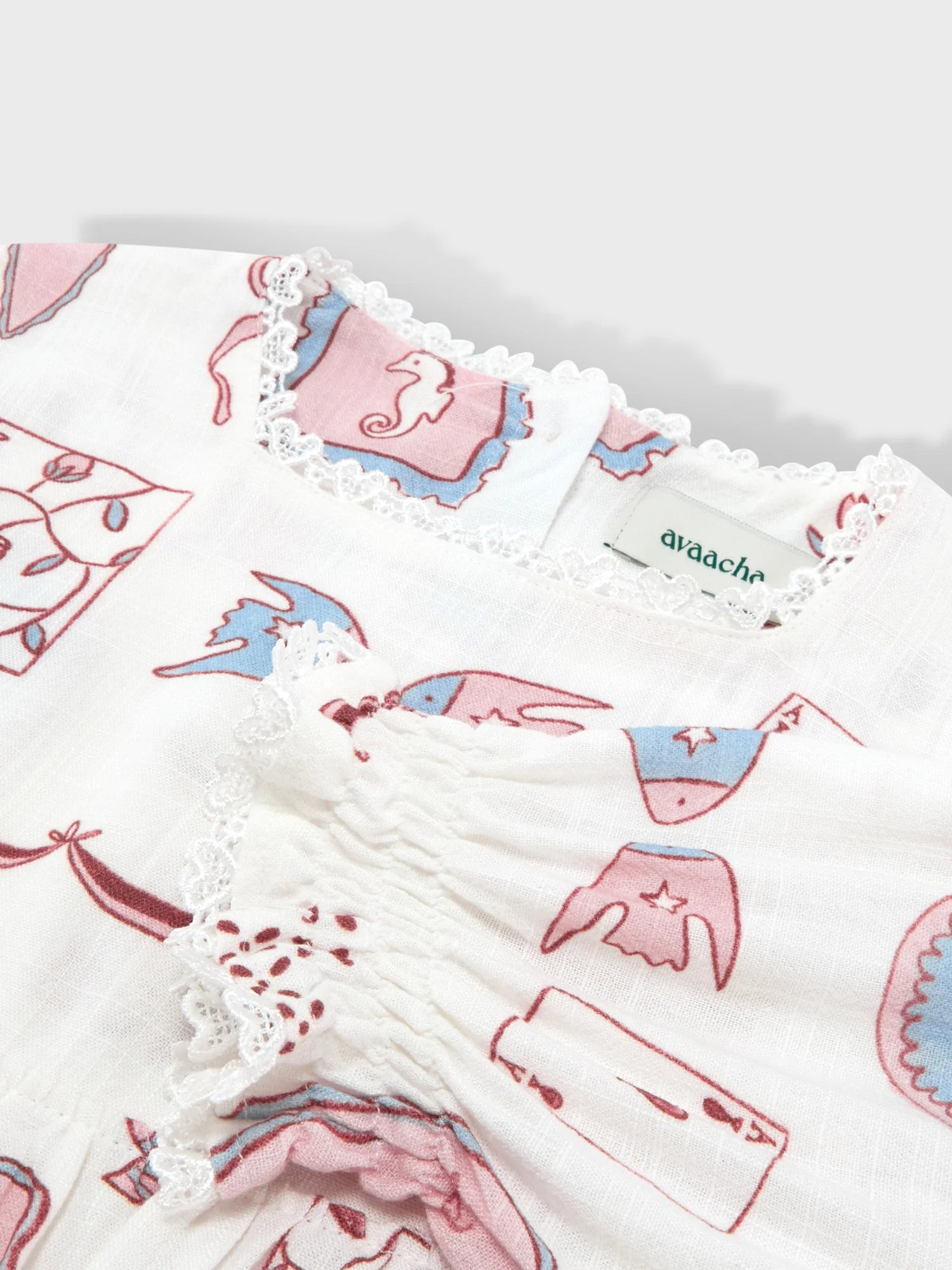 The Lara Dress in our exclusive Marea print is crafted from a luxurious, breathable cotton-linen blend. It features delicate heart lace detailing, and elasticated sleeves that add a subtle, refined touch. The dress is perfect for spring or summer occasions. Thoughtfully designed in the UAE.