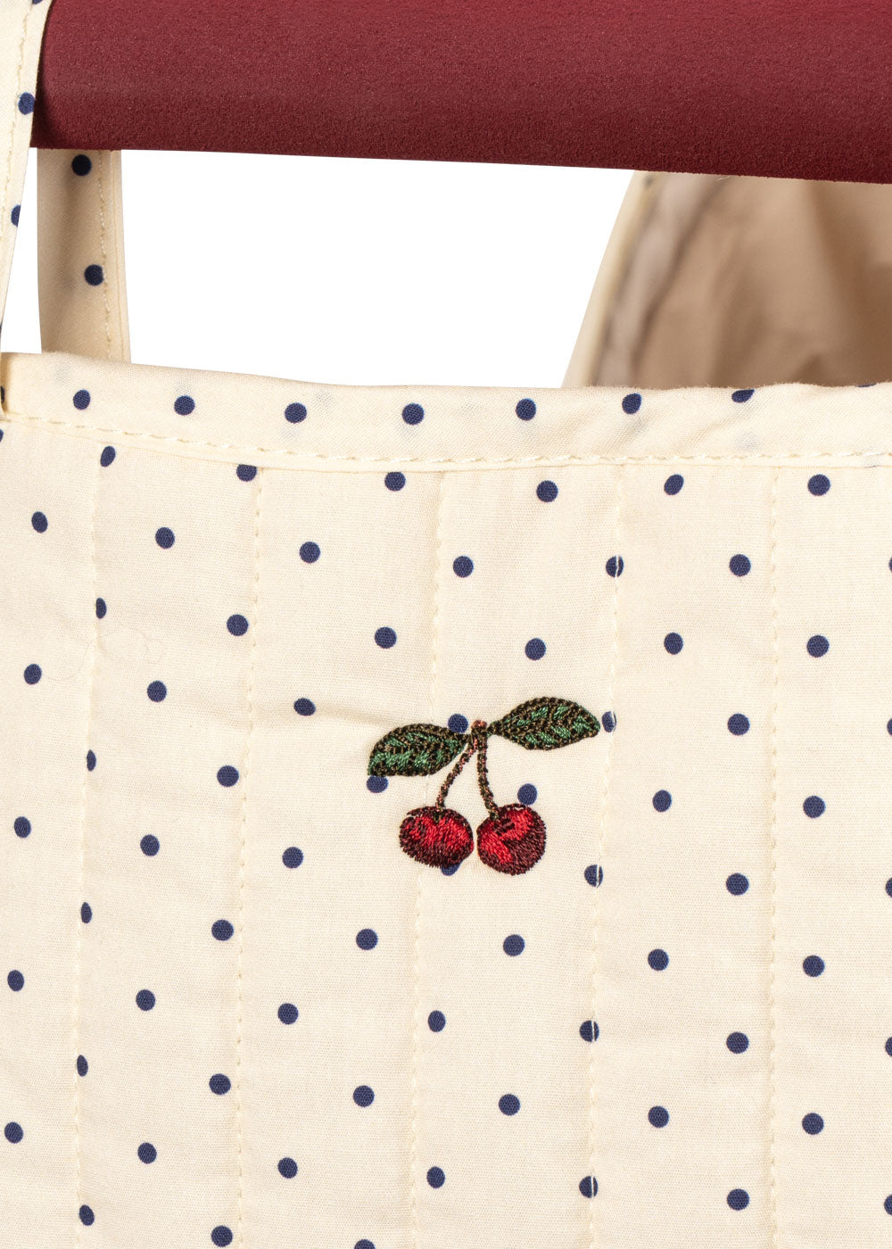 ur vintage style doll pram in a smaller version that is easy for little doll parents to maneuver. Designed with four large wheels that make it easy and stable to walk with, quilted fabric, and delicate scallop edges. The doll pram includes a foldable sun canopy and a cushioned storage basket under the lift.
