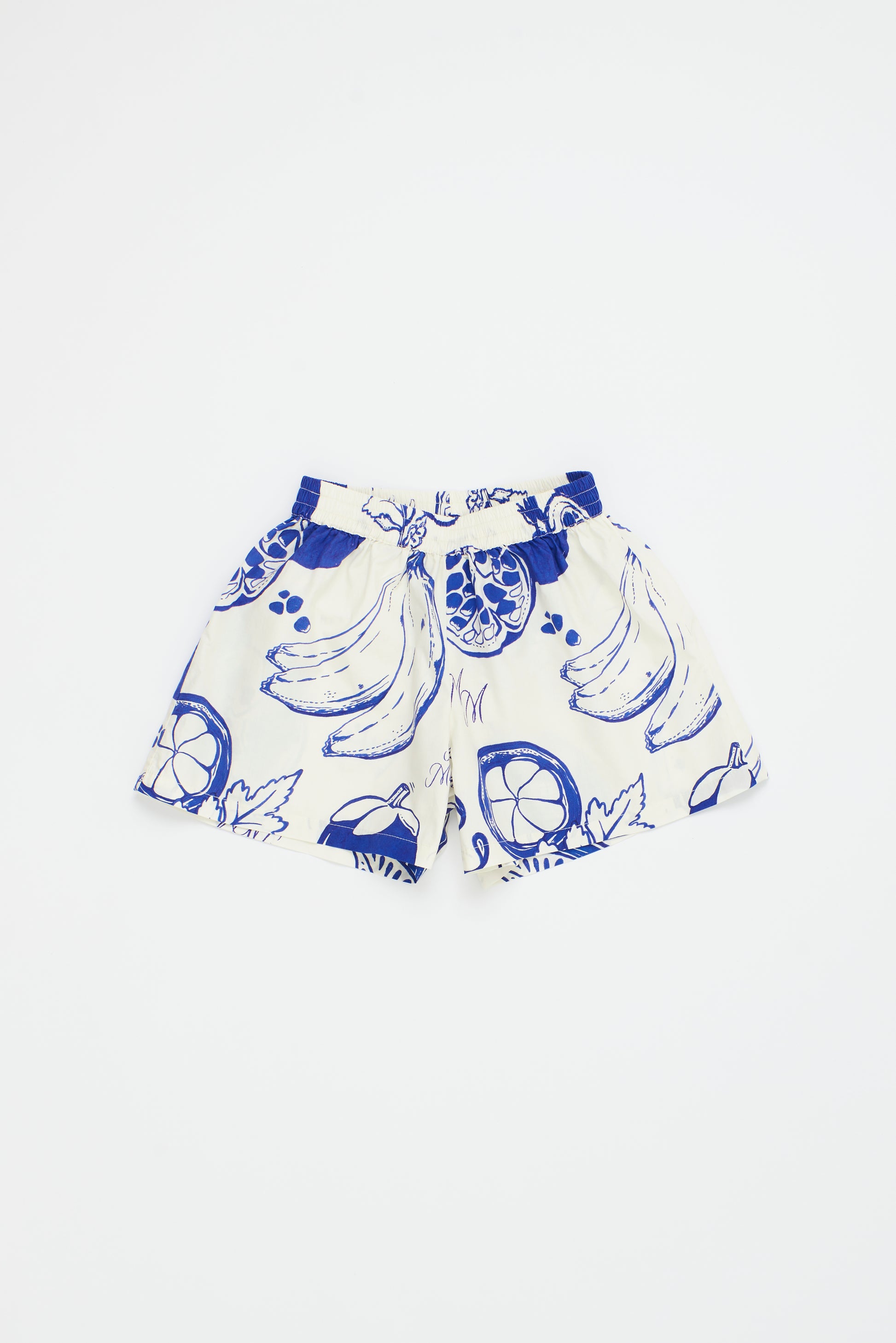 The Pomegranate print short is a fresh cotton short with a unique overall print. it has an elastic waist band and made from 100% cotton