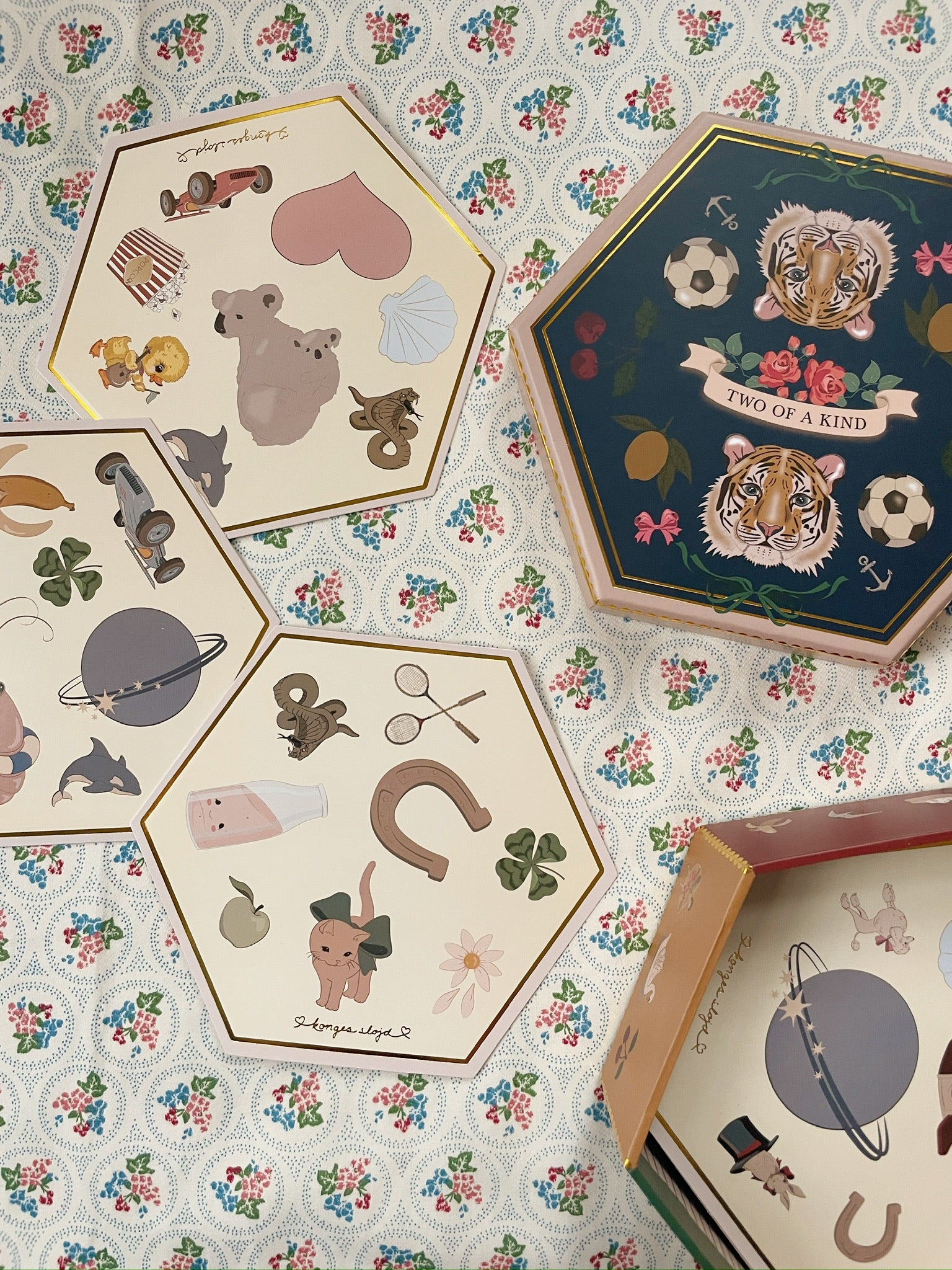 It's time for family game night! This card game is a classic: All you have to do is move your eyes quickly, look at the card, and find the identical picture on the board before everyone else. Only one symbol is repeated on each of the cards. Contains 55 cards.