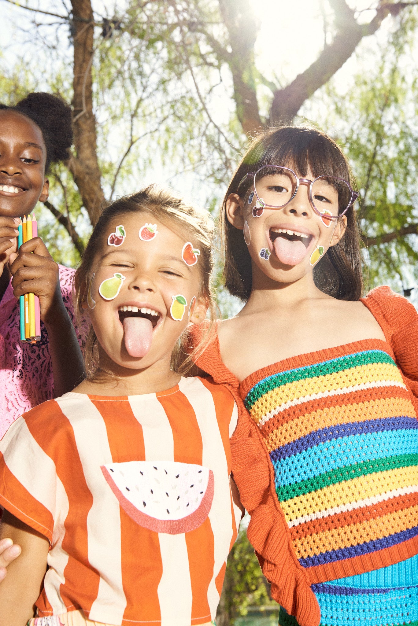 The Watermelon Striped top opens at its back and has a cute watermelon embroidery at the front!